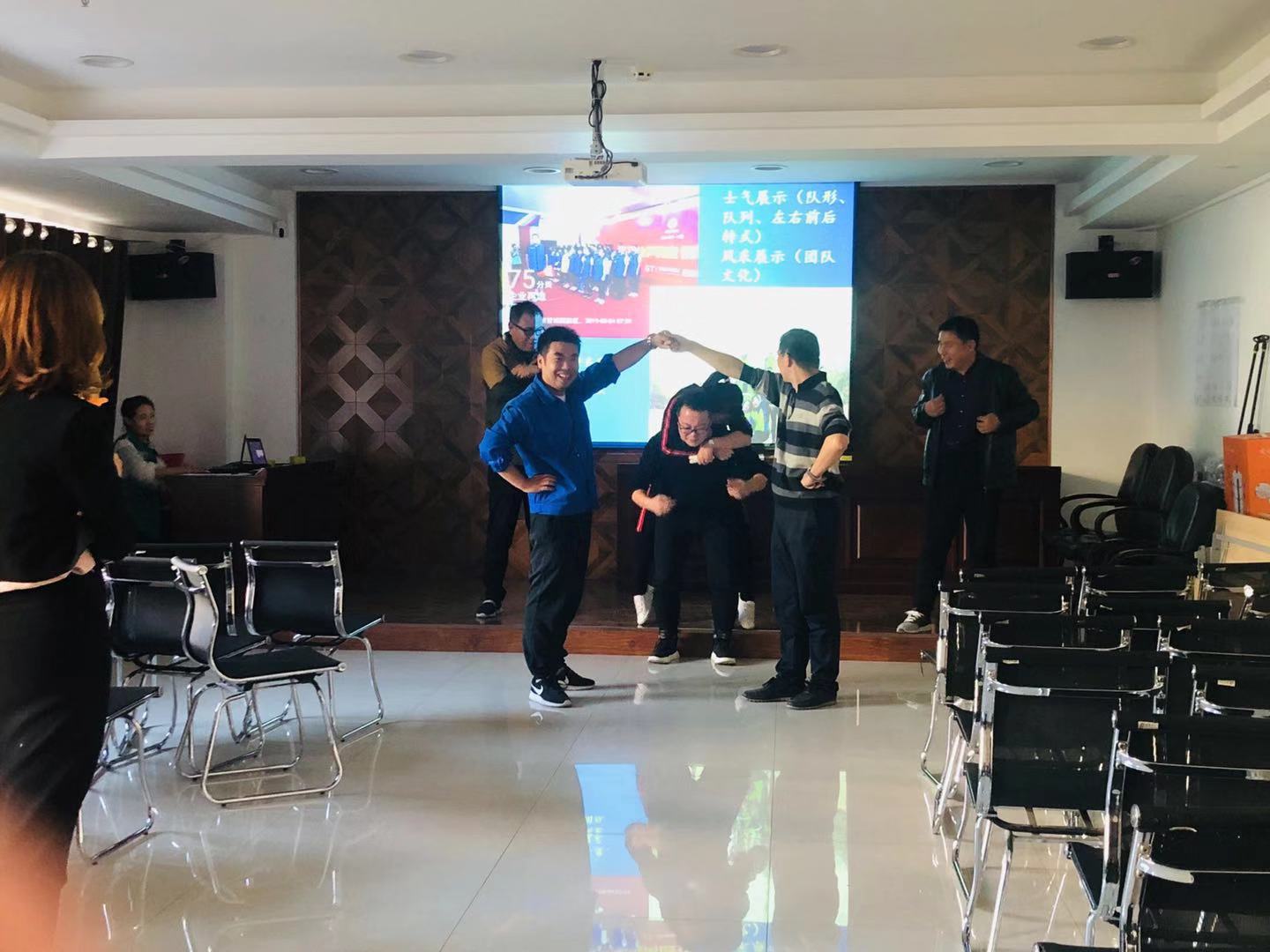此次拓展訓練旨在進一步強化管理人員的團隊合作意識,參加活動人員分四組,在素質拓展訓練指導老師的精心指導下,通過團隊成員的團結協(xié)作,先后完成了“小主人、小天使”“過AB門”“兩人三足”等一系列以激發(fā)個人潛能、熔煉團隊智慧為宗旨的室內素質拓展訓練項目。