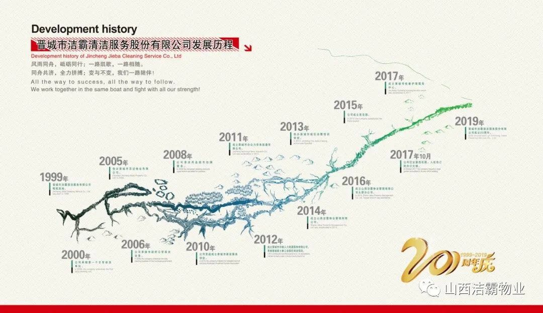 20年追夢,20年奮斗。晉城市潔霸清潔服務(wù)股份有限公司成立以來,20年經(jīng)濟大幅躍升,企業(yè)面貌脫胎換骨,社會貢獻成績斐然,職工生活顯著改善。