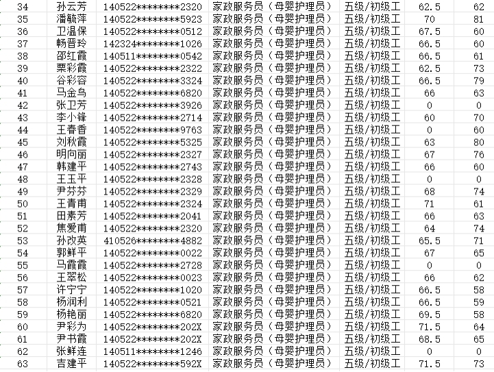 晉城市潔霸清潔服務(wù)股份有限公司 職業(yè)技能等級認(rèn)定中心 認(rèn)定人員成績公示