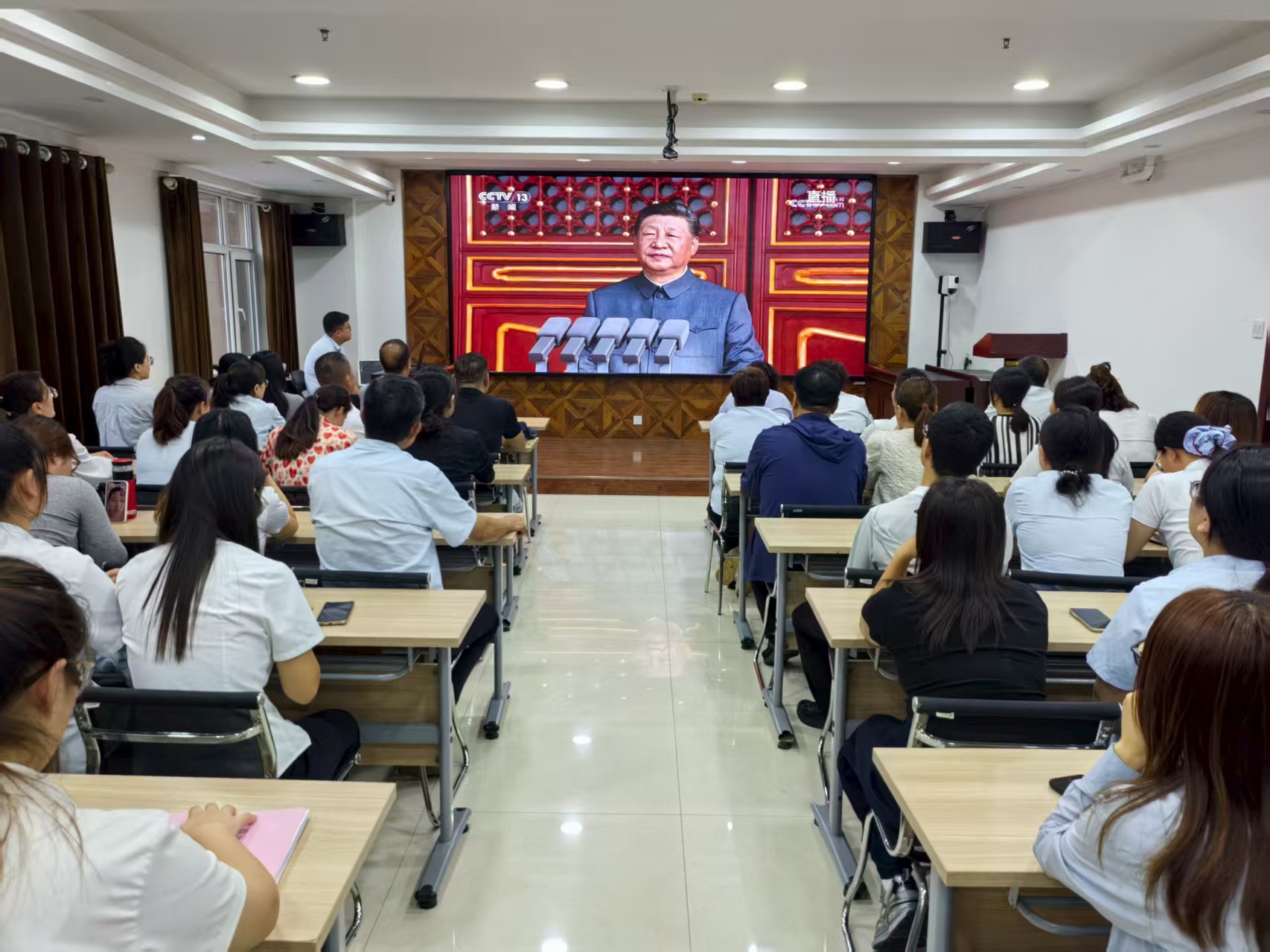 集團(tuán)公司組織觀看紀(jì)念中國(guó)人民抗日戰(zhàn)爭(zhēng)暨世界反法西斯戰(zhàn)年?duì)巹倮?0周年大會(huì)現(xiàn)場(chǎng)直播