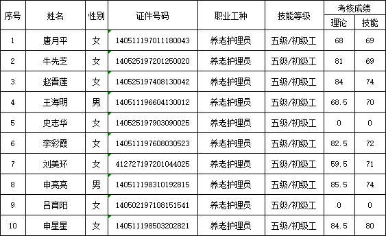 山西潔霸清潔服務(wù)集團(tuán)股份有限公司職業(yè)技能等級(jí)認(rèn)定中心現(xiàn)將2026年1月22日認(rèn)定人員成績公示如下: